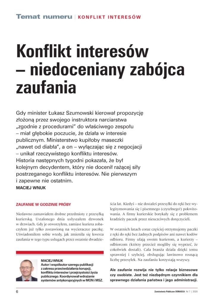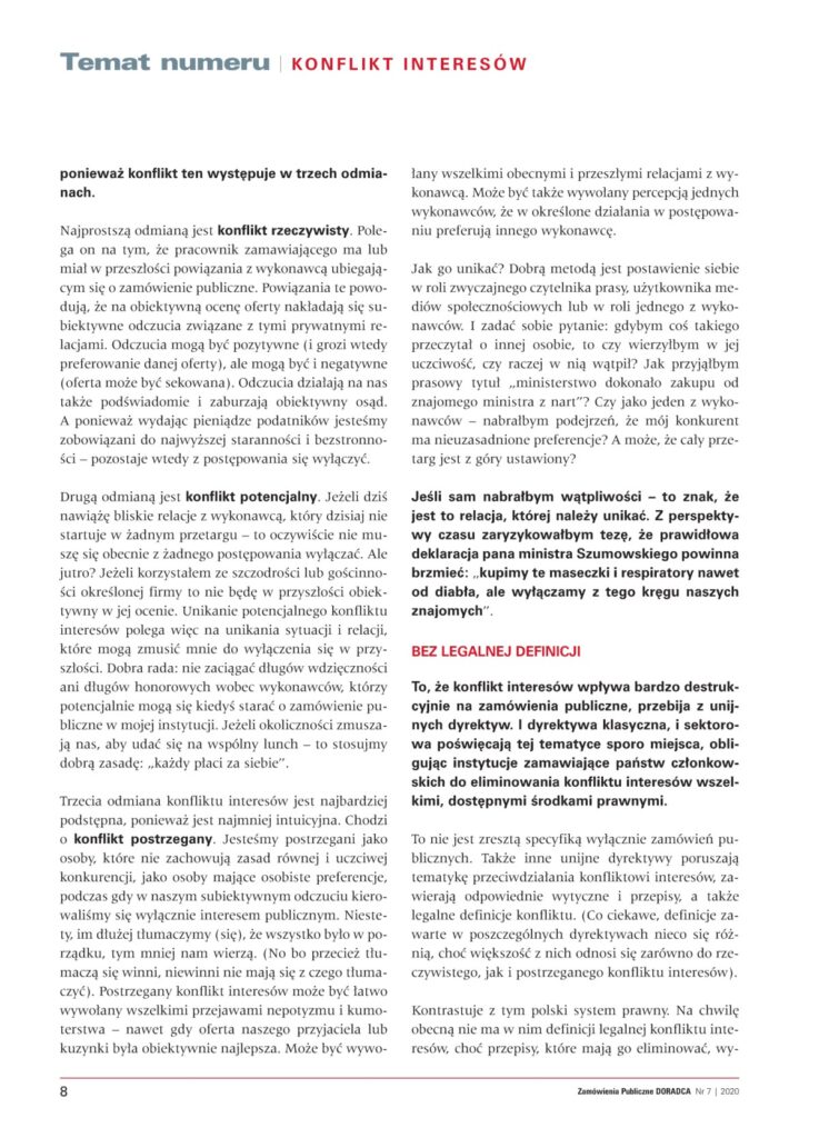 Mój artykuł z czasopisma „Zamówienia Publiczne Doradca„, nr 7/2020.